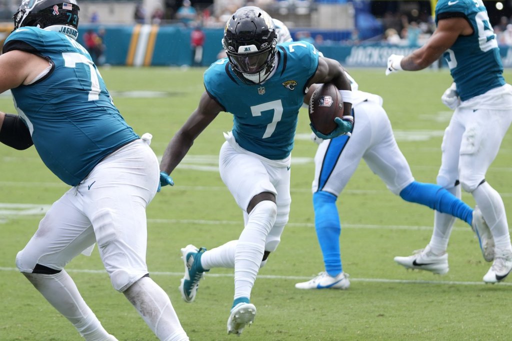 Travis Etienne had 71 yards rushing, and rookie Bhayshul Tuten added 42 more. Jacksonville is averaging 169.5 yards rushing a game.