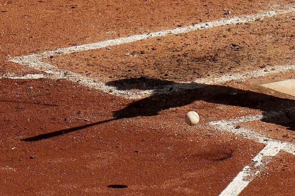 Toronto Blue Jays third base Ernie Clement's shadow is cast on the field as he hits a RBI single during seventh inning MLB baseball action against Baltimore Orioles in Toronto on Sunday September 14, 2025. THE CANADIAN PRESS/Chris Young