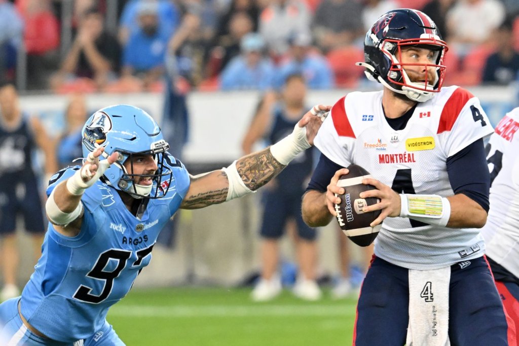 Jarret Doege’s six-yard touchdown pass to Jake Herslow at 9:54 pulled Toronto to within 18-16. Kicker Lirim Hajrullahu made a heads-up attempt at the onside kick that Argo Jon Edouard appeared to touch before Montreal’s Joshua Archibald knocked the ball out of bounds.