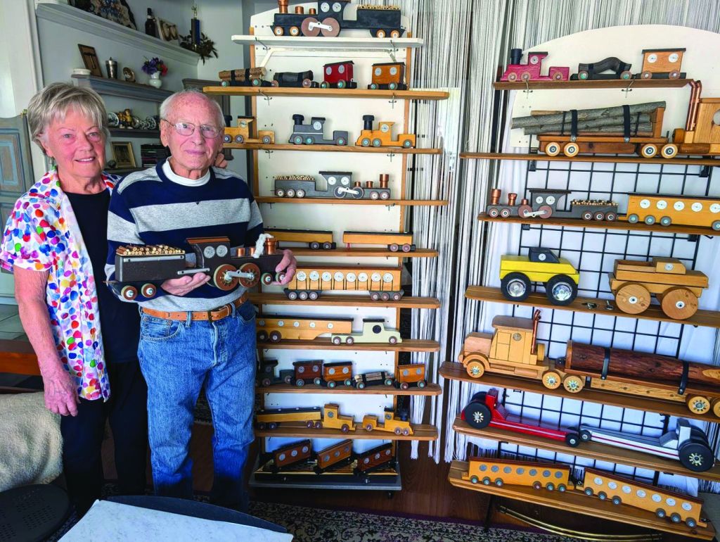 Over the past year, Krause has found a renewed passion—crafting model trains, trucks, and other miniature wooden toys from discarded white oak. He has completed dozens of intricate projects, filling an entire living room in the beautiful South End home he shares with Edith, his wife of over 63 years.
