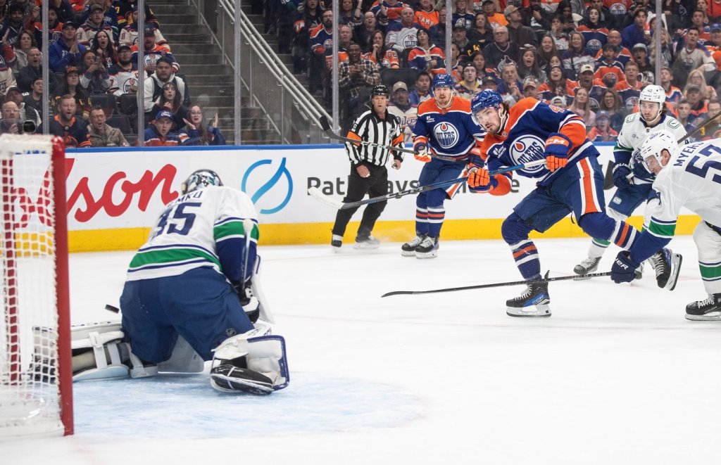 EDMONTON — Leon Draisaitl’s long backhand shot into an empty net put the game away as the Edmonton Oilers collected their first win of the season, defeating the Vancouver Canucks 3-1 on Saturday.