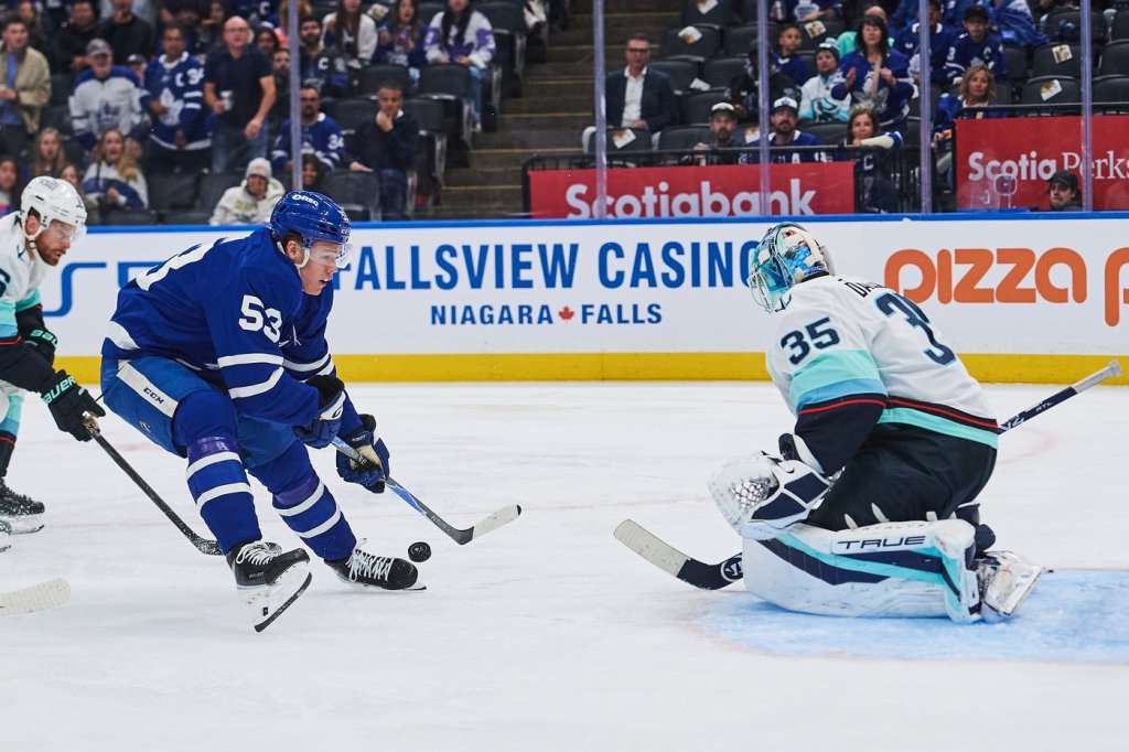 The Kraken arrived at Scotiabank Arena sporting Mariners jerseys. Seattle’s baseball team leads the Toronto Blue Jays 3-2 in the American League Championship Series and can clinch the franchise’s first-ever World Series berth with a victory Sunday in Game 6 at Rogers Centre. Game 7, if necessary, would be Monday.