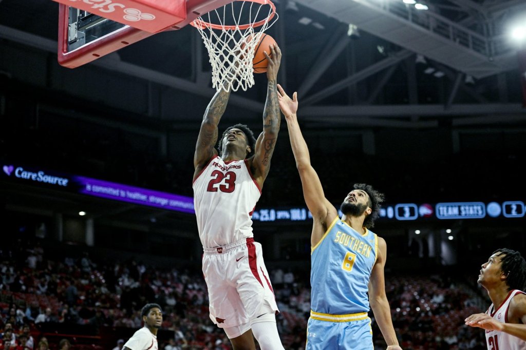 Arkansas outscored Southern 32-12 on fast-break points and 48-28 in the paint for the game. Over a nearly nine-minute span in the second half, Arkansas scored 24 straight points off field goals at the rim.
