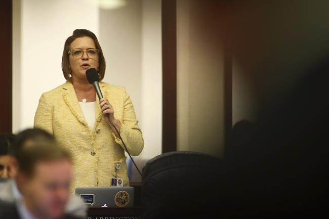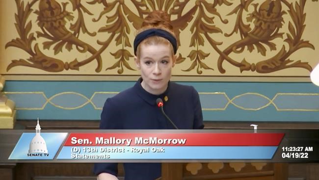 LANSING, Mich. (AP) — Republican Sen. Lana Theis opened a Michigan Senate session with an…