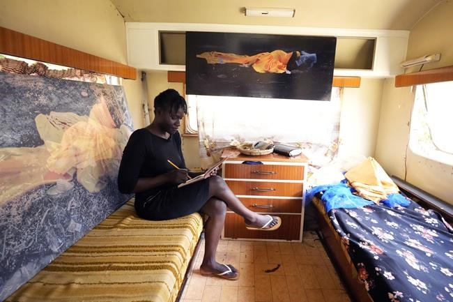 HARARE, Zimbabwe (AP) — A self-portrait shows Nothando Chiwanga covering her face with a yellow…