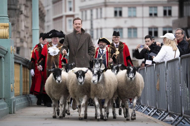 LONDON (AP) — Actor Damian Lewis drove a flock of sheep across the River Thames…