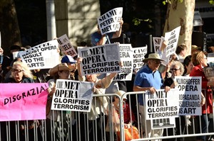 NEW YORK, N.Y. – Demonstrators marked the start of the Metropolitan Opera’s season on Monday evening by protesting the planned production of “The Death of Klinghoffer” from outside of New York City’s Lincoln Center.