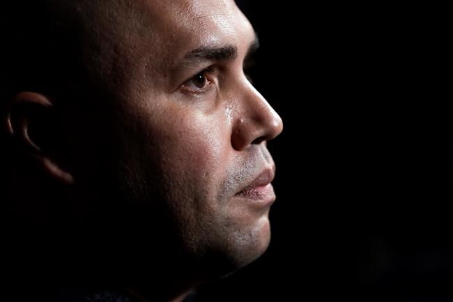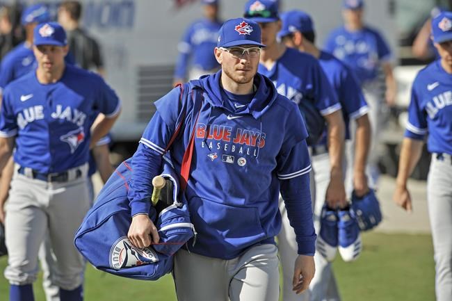 TORONTO – A white Blue Jays uniform with No. 82 on the back hung in…