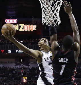 SAN ANTONIO – Tim Duncan had 21 points and 10 rebounds, and the San Antonio Spurs beat the Miami Heat 110-95 on Thursday night in Game 1 of the NBA Finals inside a sweltering AT&T Center.