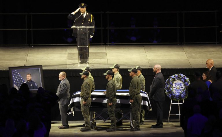 Rows of uniformed law enforcement and a crowd of other mourners honored a slain Ohio…