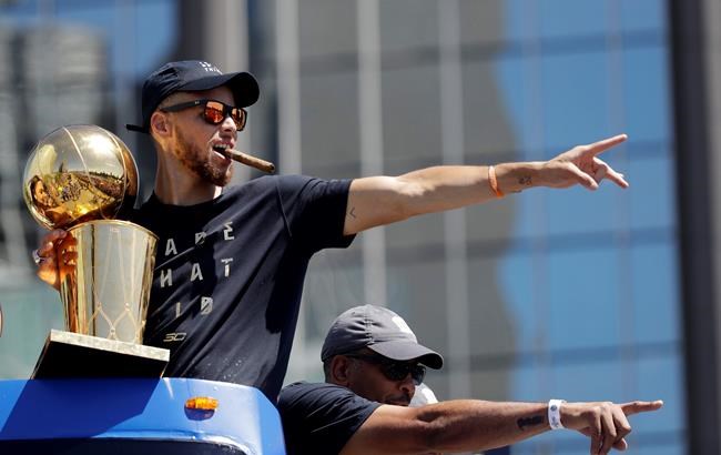OAKLAND, Calif. – The Latest on victory celebrations for the Golden State Warriors (all times…