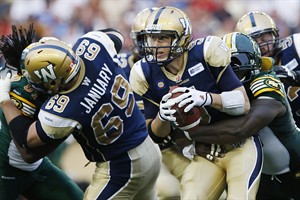 WINNIPEG – The Winnipeg Blue Bombers were back on the field Monday for the first time since they fell 26-3 to the Edmonton Eskimos last week, their first loss of the season, and with five quarterbacks throwing balls it looked at times like training camp all over.