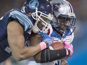 TORONTO – Shea Emry makes his living being dominant. The Toronto Argonauts middle linebacker has the brute strength to face a hulking offensive lineman head-on and is quick enough to track down a speedy running back in the open field.