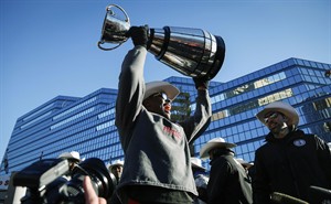 VANCOUVER – The Calgary Stampeders were so excited after winning the Grey Cup, they broke the trophy.