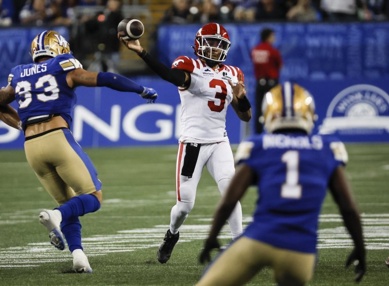 TORONTO — Winnipeg defensive lineman Willie Jefferson, Saskatchewan quarterback Trevor Harris and the Roughriders’ offensive…