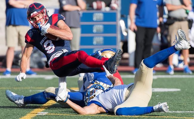 Montreal quarterback Vernon Adams Jr., Alouettes receiver Jake Wieneke and Winnipeg Blue Bombers running back…