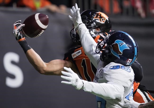 TORONTO – B.C. receiver Bryan Burnham, Saskatchewan Roughriders receiver Shaq Evans and Lions quarterback Mike…