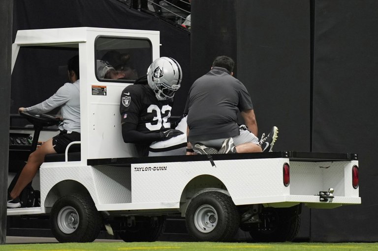 HENDERSON, Nev. (AP) — Raiders safety Lonnie Johnson Jr. broke his right leg in Las…