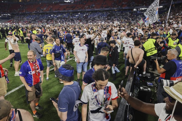 MUNICH (AP) — Paris Saint-Germain fans had to be held back by a line of…