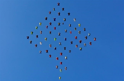 LOS ANGELES, Calif. – Sixty-one wingsuit skydivers have flown into the record books, creating a diamond-shaped formation while soaring over California before breaking apart and floating to the ground.