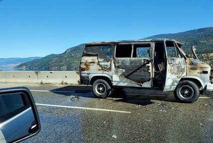 Emergency crews were on scene this afternoon after a van caught fire along Highway 97.…