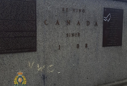 VERNON – RCMP is investigating after lettering and plaques were discovered missing from a Vernon…