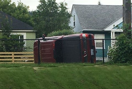 Truck flipped on its side after two-vehicle crash in Kamloops