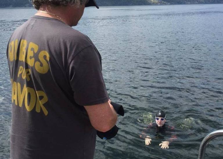 Triathlete strokes toward goal as marathon Okanagan Lake swim passes 70 km mark